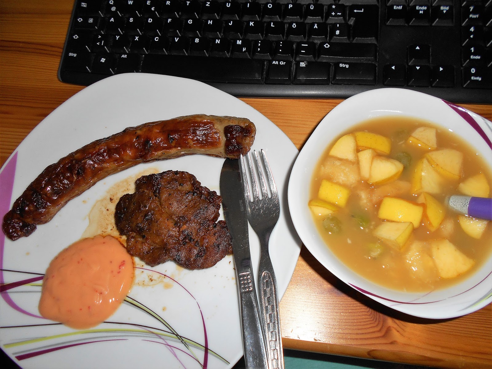 Zum Mittag gab es immer noch Grillreste und eine kleine Schale Obstsalat.