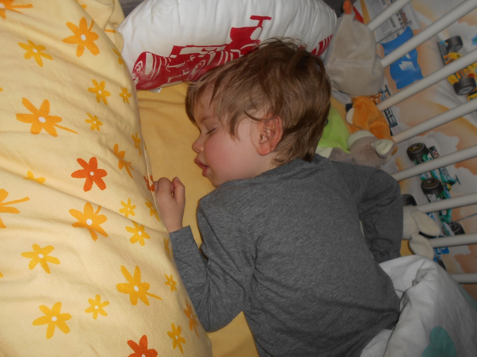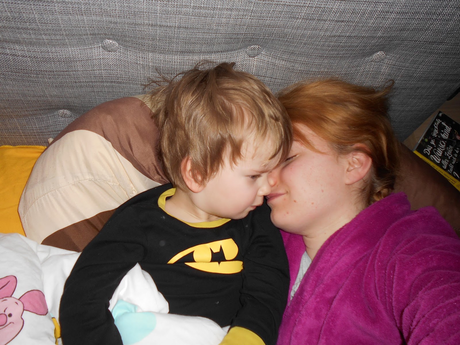 Nach einer Weile wollte Olli den Papa wecken, der saß mit dem Handy spielend im Bett. Wir haben uns alle 3 nochmal zusammen gelegt.