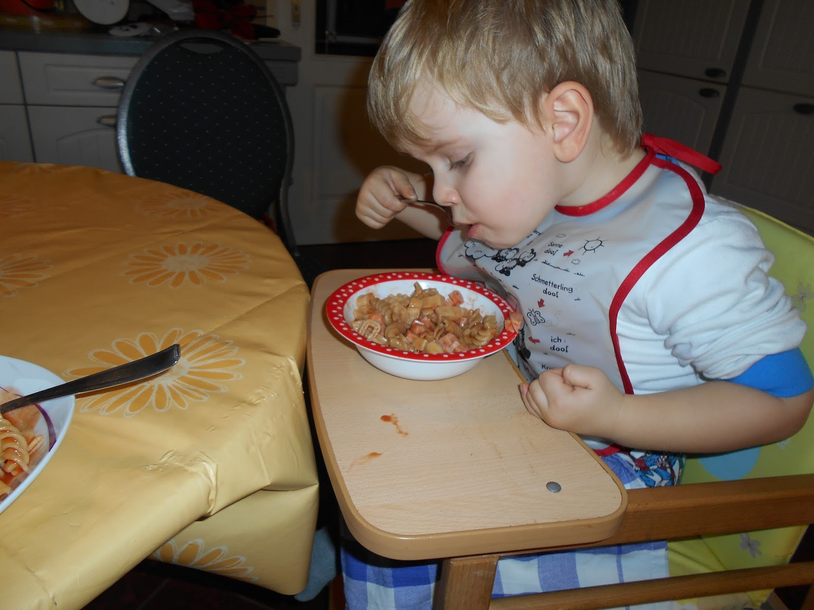 Kurz nach 11 Uhr fing ich dann an das Mittagessen zu kochen. Das Zwergenkind hatte sich bereits letztes Wochenende Nudeln gewünscht und auch schon in der Woche hat er sich öfter Nudeln gewünscht. Also gab es Nudeln mit Tomatensoße. Ist ja nicht so, als würden André und ich das nicht auch sehr gerne essen.