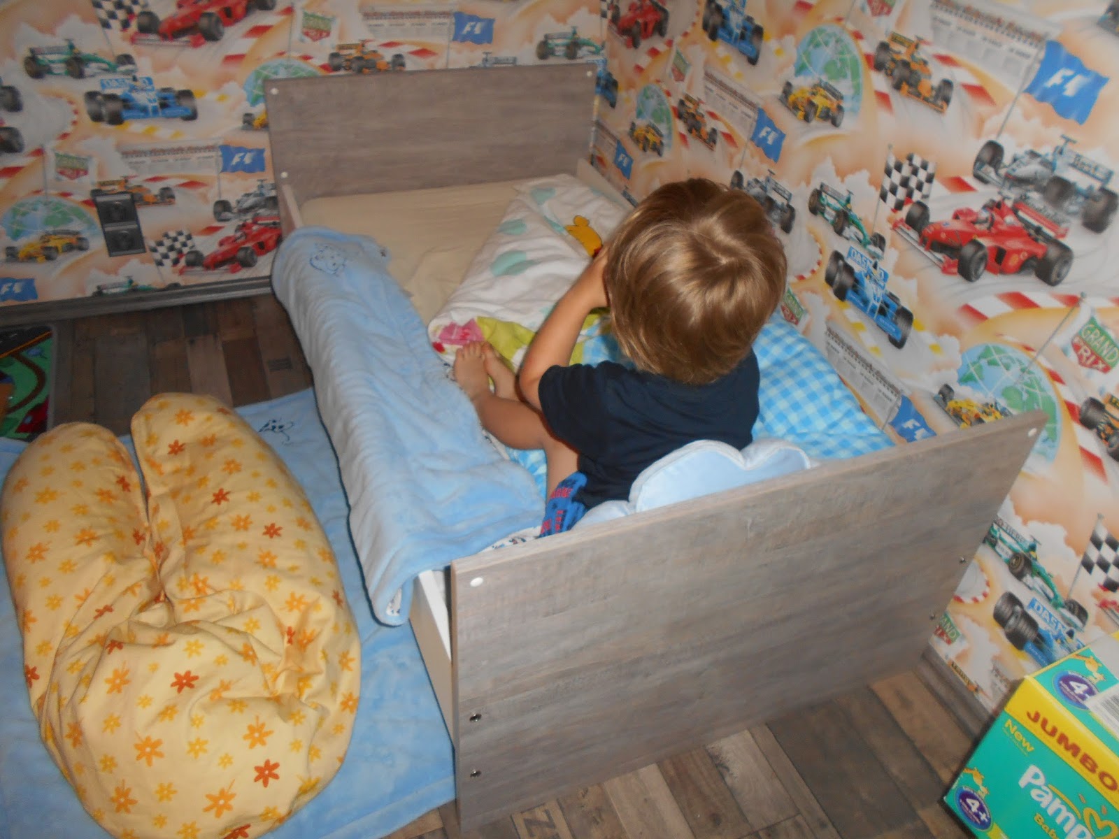 Ausschlafen wird hier überbewertet. Olli hat seine Milch im umgebauten Bett eingenommen, der kleine Prinz.