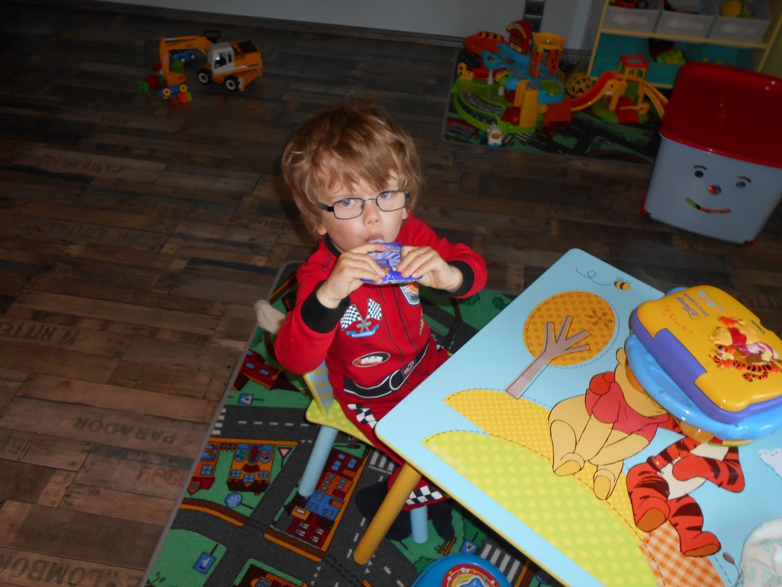 Der Tag begann seeeeeehr früh. Ich bin selber Schuld, wenn ich morgen ca. 05.15 Uhr auf die Toilette muss. Ungefähr eine Stunde später sind wir aufgestanden und der Zwerg hatte gleich seinen Spaß in seinem Zimmer.