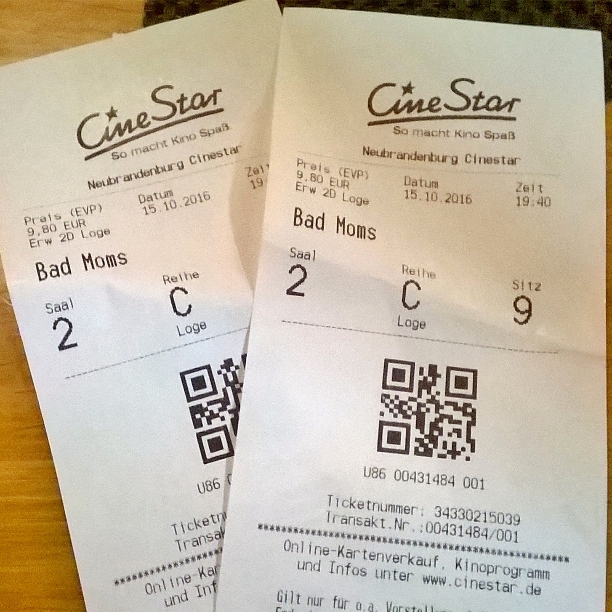 Ich habe meine beste Freundin abgeholt und wir sind dann in die Stadt gefahren, haben bei Nordsee Abendbrot gegessen und sind danach ins Kino gegangen, um „Bad Moms“ zu gucken. Der Film war so lustig. Das war mal wieder richtig toll. Danach sind wir noch in eine Bar getrunken und haben richtig harte, alkoholfreie Cocktails getrunken. Sind wir nicht rebellisch?