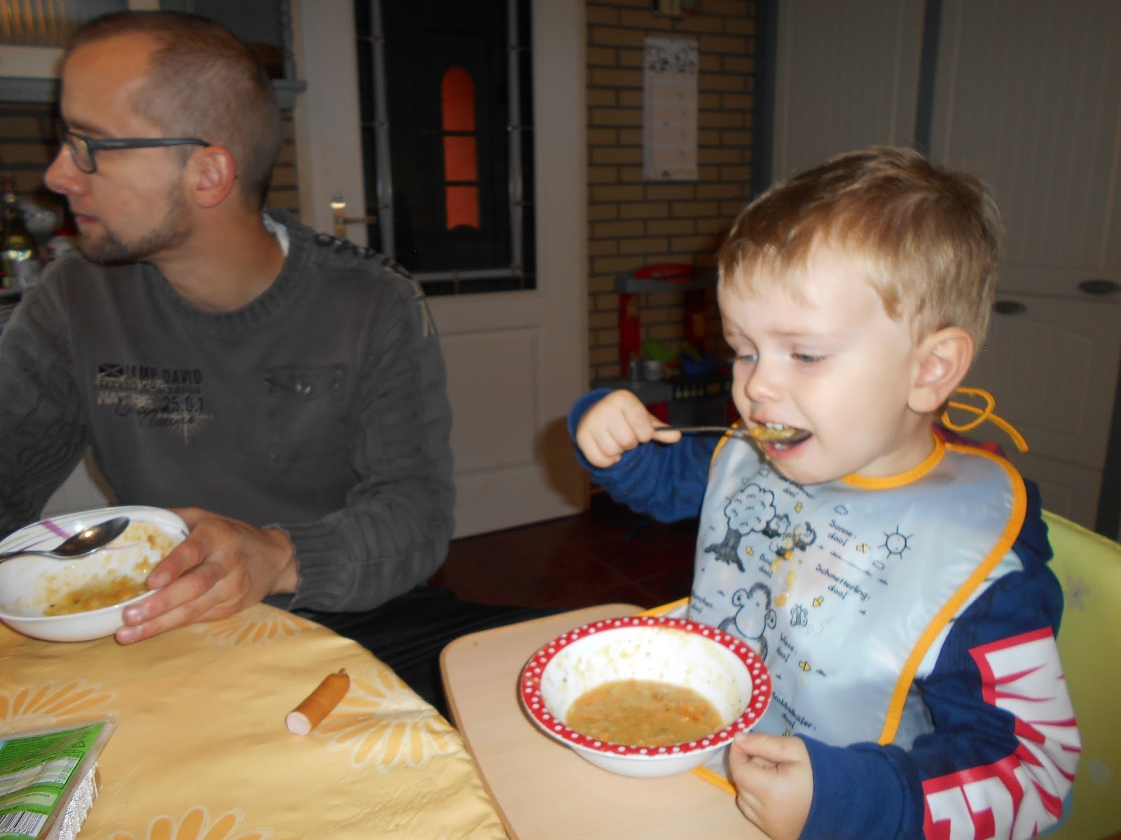 Nach dem Frühstück sind André und Oliver raus gegangen und haben auf dem Hof Kastanien gesammelt und ich habe mich um den Haushalt und ums Mittagessen gekümmert. Es gab heute eine Suppe.