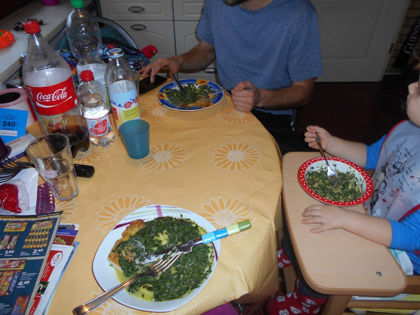 Zum Mittag gab es Spinat, den mir meine Mutti von meinem Opa mitgebracht hat.
