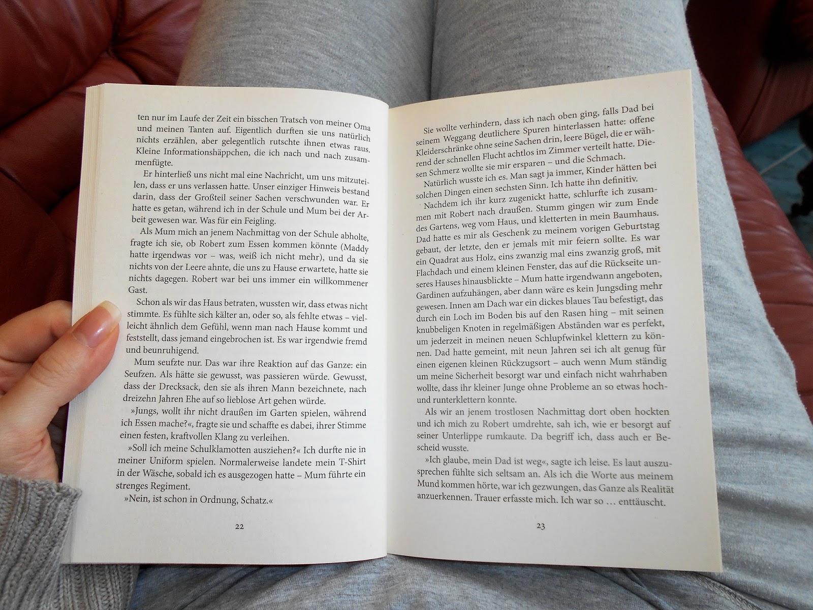 Gleich nach dem Frühstück mussten die Männer sich beeilen. Die Nachbarn wollten mit dem Hund spazieren gehen und da wollten sie mit. Während sie unterwegs waren und danach noch draußen spielten, erledigte ich wieder ein paar Sachen im Haushalt und genoss ein wenig die Ruhe zum Lesen des Buches Zwei Richtige für Maddy.