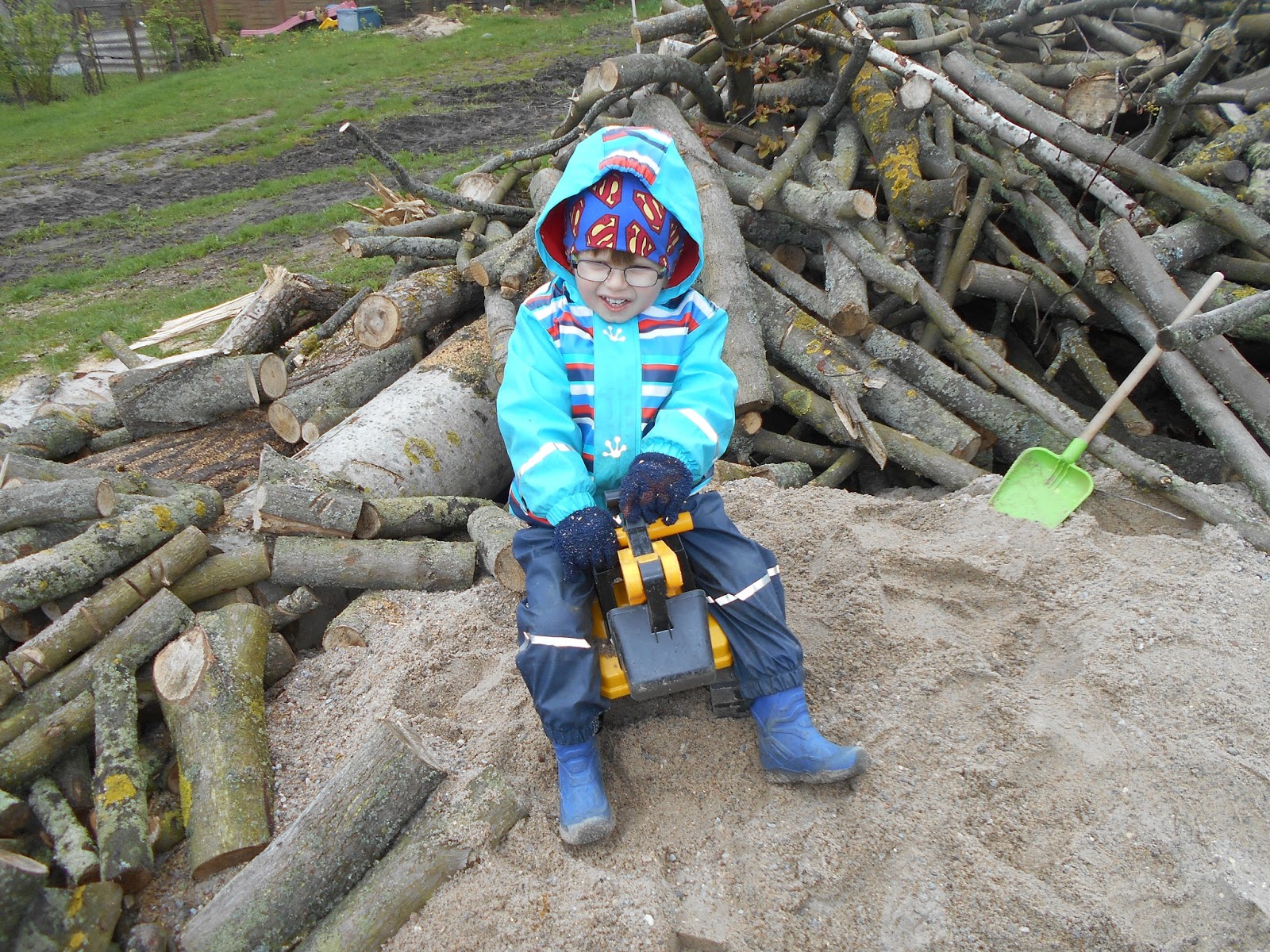 Oliver hatte seinen Spaß mit dem Bagger. Das Wetter ließ allerdings zu wünschen übrig. Immer wieder gab es Regenschauer.