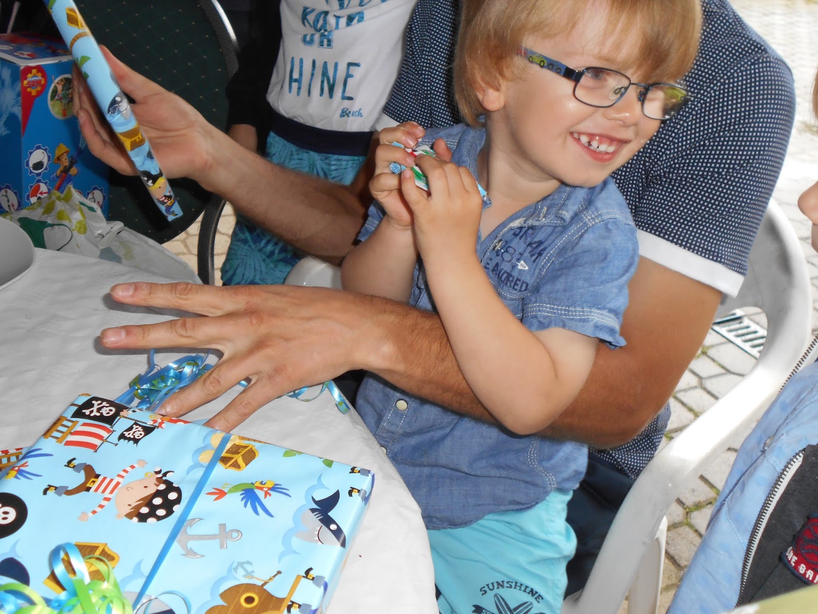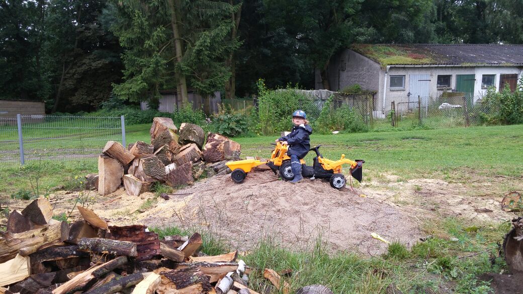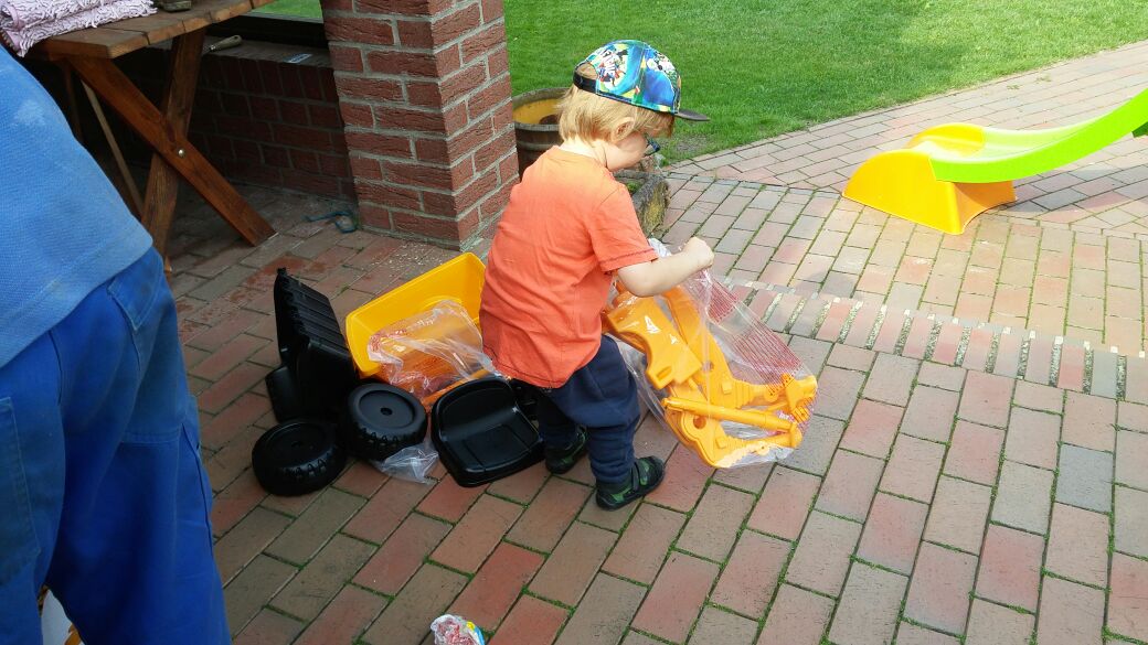 Als wir alle zurück waren, bekam Olli sein erstes Geburtstagsgeschenk und freute sich über seinen Traktor. Doch die Enttäuschung war groß, denn André hatte keine Zeit den Traktor aufzubauen.