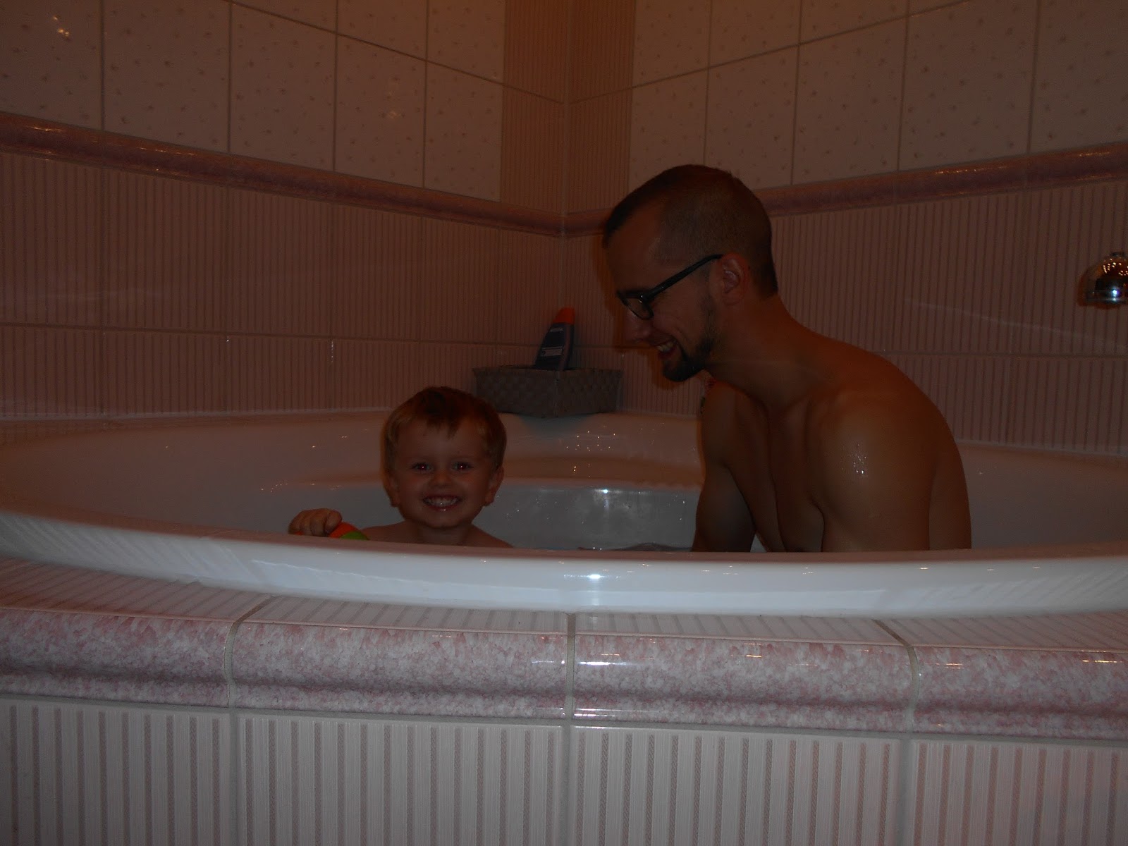 Der Abend endete dann nach dem Abendbrot für die Männer wieder in der Badewanne und ich ging wieder schnell duschen. Kaum hatte ich unsere Handtücher hingelegt, machte es sich Pepper darauf bequem, die sichtlich erschöpft vom Tag war.